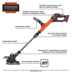 - Lässt sich leicht von einem Trimmer in einen Kantenschneider mit Rädern umwandeln.