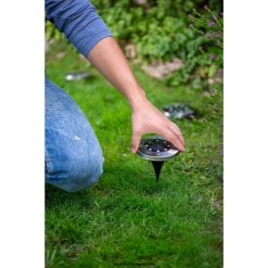 - Einfache Montage: Keine Kabel oder Werkzeuge erforderlich. Jede Leuchte verfügt über einen Erdspieß für eine einfache Installation.