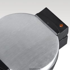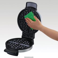 Eine dicke, flauschige belgische Waffel mit einem Durchmesser von 7 1/4 Zoll ist bereits in vier Abschnitte unterteilt und kann sofort geteilt werden, wenn sie aus diesem hübschen Waffeleisen kommt. Das liegt daran, dass die Trennwände der Gitter hoch genug sind, um die Abschnitte zu trennen. Die Gitter sind antihaftbeschichtet, was bedeutet, dass sie die vierteilige Waffel leicht lösen und leicht abwischen können. Eine Bereitschaftsleuchte leuchtet, wenn das Waffeleisen richtig erhitzt ist, um den Teig aufzunehmen, und leuchtet wieder, wenn die Waffel gebacken ist. Mit seinem Chromgehäuse und den kühl bleibenden schwarzen Kunststoffgriffen macht dieses 650-Watt-Gerät auf der Arbeitsplatte eine gute Figur. Anschließend wird das Kabel um das Scharnier gewickelt, und Sie können das Waffeleisen zur kompakten Aufbewahrung aufrecht hinstellen.