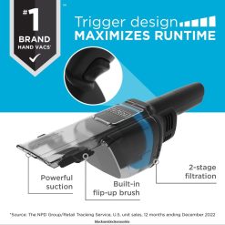 - Abzugsdesign maximiert die Laufzeit: Lassen Sie den Auslöser einfach los, wenn Sie vom Verschütten zum nächsten gelangen Verschütten Sie Flüssigkeiten, um die Laufzeit zu maximieren und die Absaugung nur dann und dort zu verwenden, wo Sie sie benötigen.