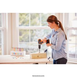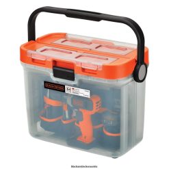 20 V max. Bohrer. Maximal 20 V Batterie. Ladegerät. (32) Befestigungsbits. (12) Innensechskantschlüssel. (10) Bohrer. Allzweckmesser. Maßband. Spitzzange. Gleitgelenk Zangen. Ebene. Hammer. Hardware-Kit zum Aufhängen von Bildern. transluzentHNO-Werkzeugkasten. modulare Werkzeugablage