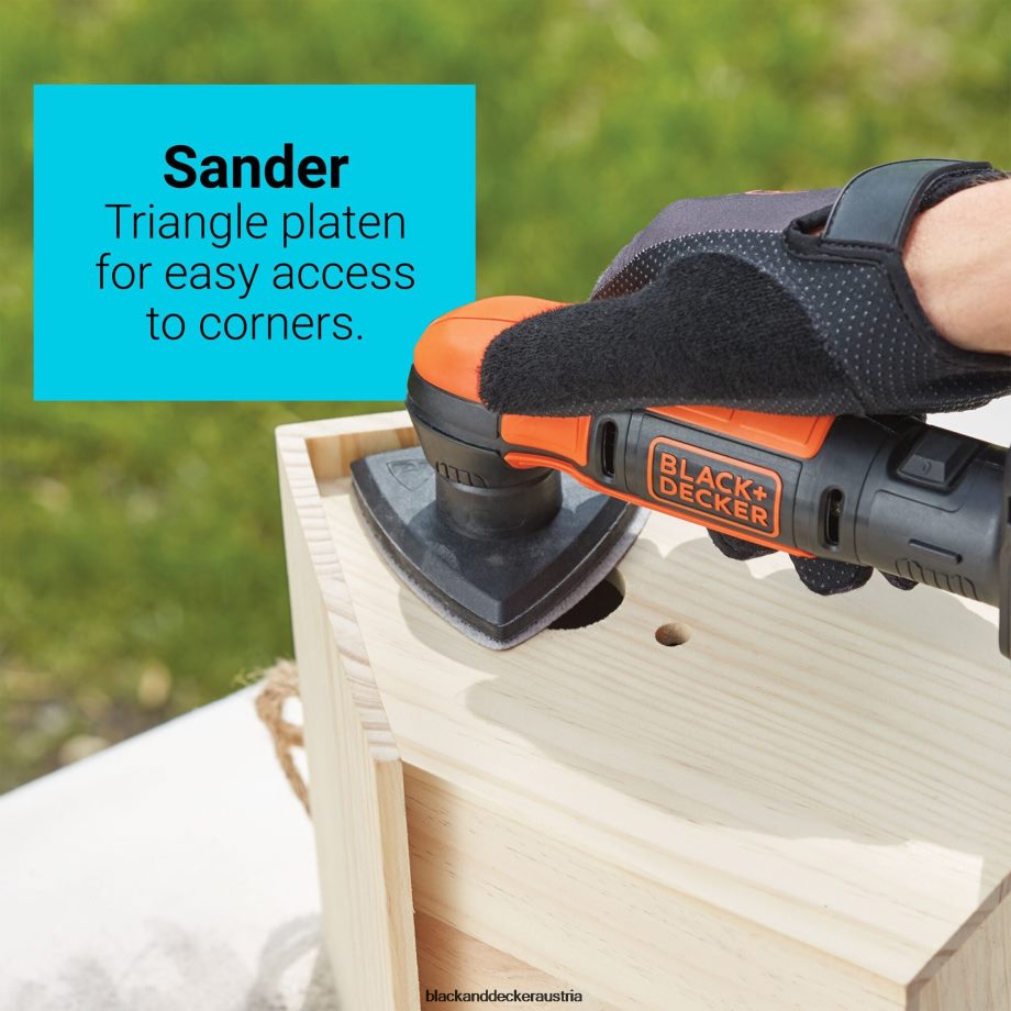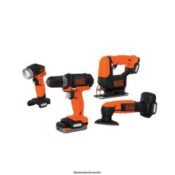 Wenn es um Heimwerken geht, sind Ihrer Fantasie keine Grenzen gesetzt. Lassen Sie sich mit dem Gopak 12V Max 4-Werkzeug-Kombiset von Black+Decker dabei helfen, Ihre Ziele und Aufgaben zu erreichen, z. B. grundlegende Reparaturen zu Hause, Möbel-Upcycling, Schilderherstellung, Bohren und Fahren, Schleifen und vieles mehr. Dieses Set enthält einen Bohrschrauber, eine Stichsäge, einen Schleifer und eine LED-Taschenlampe. Der Bohrschrauber ist mit einer 11-Positionen-Kupplung ausgestattet, die ein Überdrehen und Abisolieren von Schrauben verhindert, sowie mit einem eingebauten LED-Arbeitslicht, das Ihre Arbeitsfläche und dunkle Bereiche beleuchtet. Verwenden Sie die Stichsäge für gerade, gebogene und abgewinkelte Schnitte. Dank der werkzeuglosen Klingenentriegelung können Sie die Klinge schnell und einfach austauschen, während die integrierte Klingenaufbewahrung für zusätzlichen Komfort sorgt. Dank der dreieckigen Aufspannplatte des Schleifers können Sie auch in enge Ecken vordringen. Die LED-Taschenlampe bietet eine starke Beleuchtung und ihr Kopf ist um 90 Grad drehbar, sodass Sie auch in schwer zugänglichen Winkeln vollständige Sicht haben. Alle Werkzeuge in diesem Set werden mit einem wiederaufladbaren Gopak-Akku betriebenj. Dieser Akku ist tragbar und verfügt über einen USB-Anschluss, sodass er sogar andere USB-kompatible Geräte wie Mobiltelefone oder Tablets aufladen kann. Darüber hinaus wissen Sie dank einer Ladezustandsanzeige immer auf einen Blick, wie viel Energie der Akku noch übrig hat. Die maximale anfängliche Batteriespannung (gemessen ohne Arbeitsbelastung) beträgt 12 Volt. Die Nennspannung beträgt 10,8 Volt.