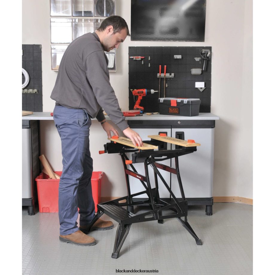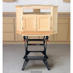 - Zwei höhenverstellbare Beine lassen sich zusammenklappen, um die Höhe für größere Projekte zu senken