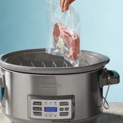 - Temperaturfühler: Stressfreies Abendessen! Stellen Sie einfach die gewünschte Temperatur ein und führen Sie den Fühler in die Fleischstücke ein, um den von Ihnen bevorzugten Gargrad zu erreichen. Der Slow Cooker schaltet die Heizzyklen um, um die Speisen auf der Zieltemperatur zu halten.