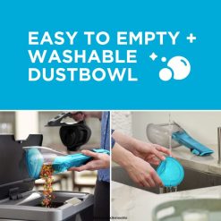 - Leicht zu entleerender Mülleimer – durchsichtig Dank des beutellosen Schmutzbehälters lässt sich der Schmutzstand leicht erkennen und entleeren, ohne den Schmutz zu berühren.