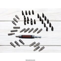 (2) PH1-Bits, (5) PH2-Bits, (2) PH3-Bits, (2) Hex-5/32-Zoll-Bits, (2) Hex-3/16-Zoll-Bits, (2) Hex-Bits 1/4-Zoll-Bits, (2) SL6-Bits, (3) SL8-Bits, (3) SL10-Bits, (2) SL12-Bits, (2) Square1-Bits, (3) Square2-Bits, (2) Square3-Bits, ( 2) Star10-Bits, (2) Star15-Bits, (2) Star20-Bits, (3) Star25-Bits, (1) magnetische Antriebsführung, (1) Aufbewahrungskoffer.
